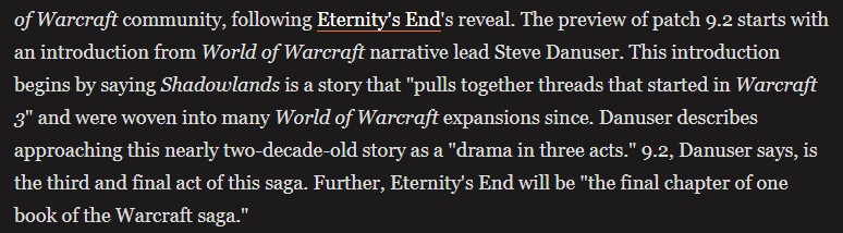 At what point does anyone in this leadership team get a clue? How far does the descent lead? Why would an executive level writer lie to bite a piece of Yoshippy’s moves, when everyone knows that a majority of WC 3’s saga ended in Wrath of the Lich King, and the best argument for any saga left after that would be the end of the Legion expansion?